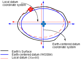 Ø 地心基准面:由卫星数据得到,使用地球的质心作为原点,使用最广泛的是 WGS 1984。