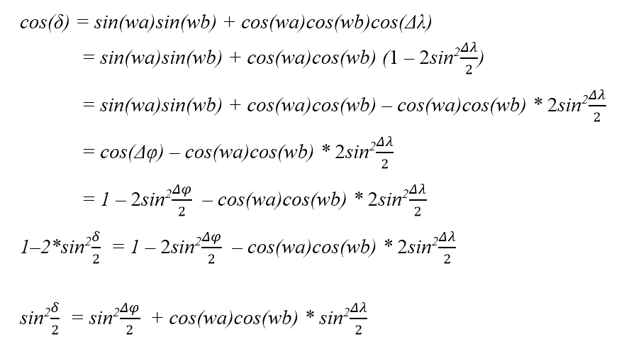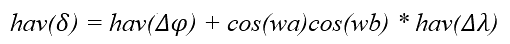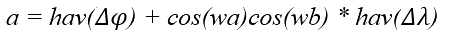 结合上述对半正矢的定义,我们就可以得出如下的Haversine 公式: